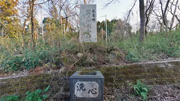 筑波山男体山への登山コース、裏筑波の林道、駐車スペース不老峠-男の川分水神の石碑